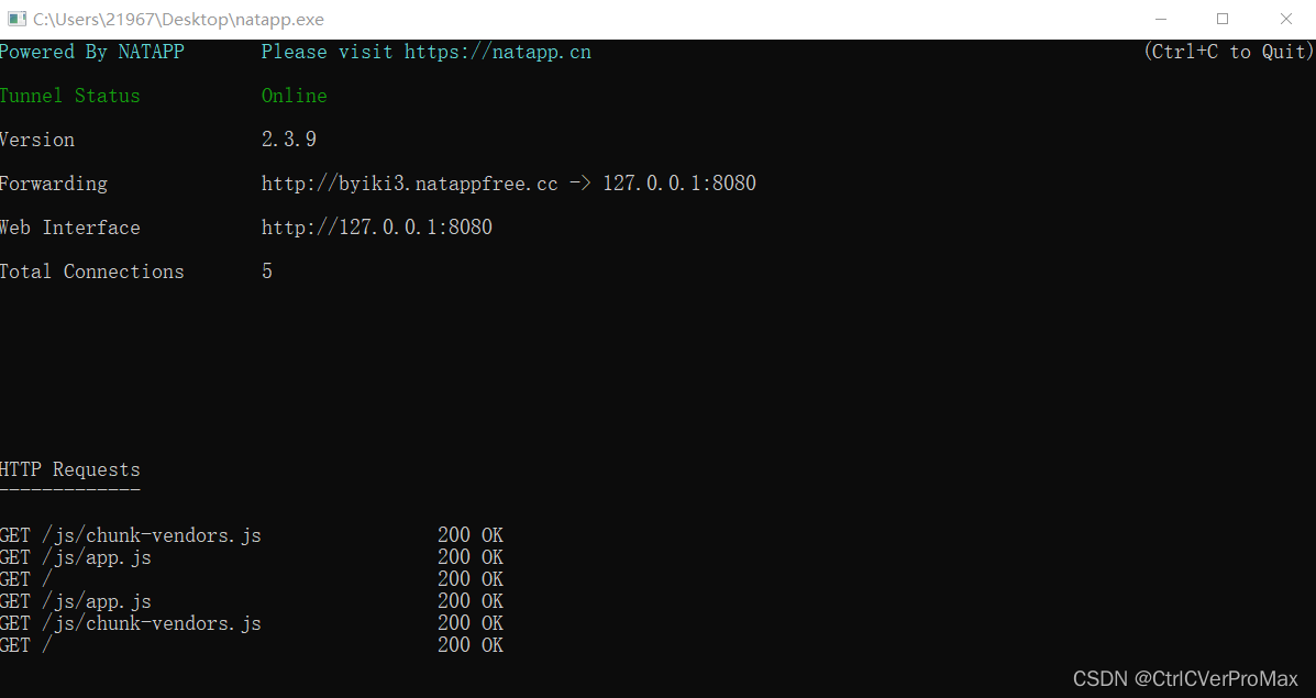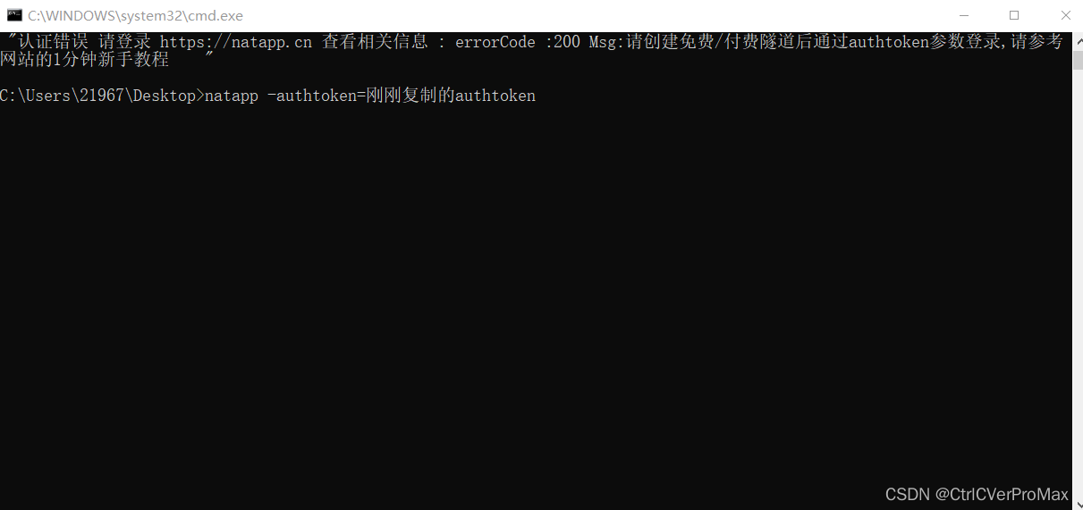 在命令框输入natapp -authtoken=刚刚复制的authtoken