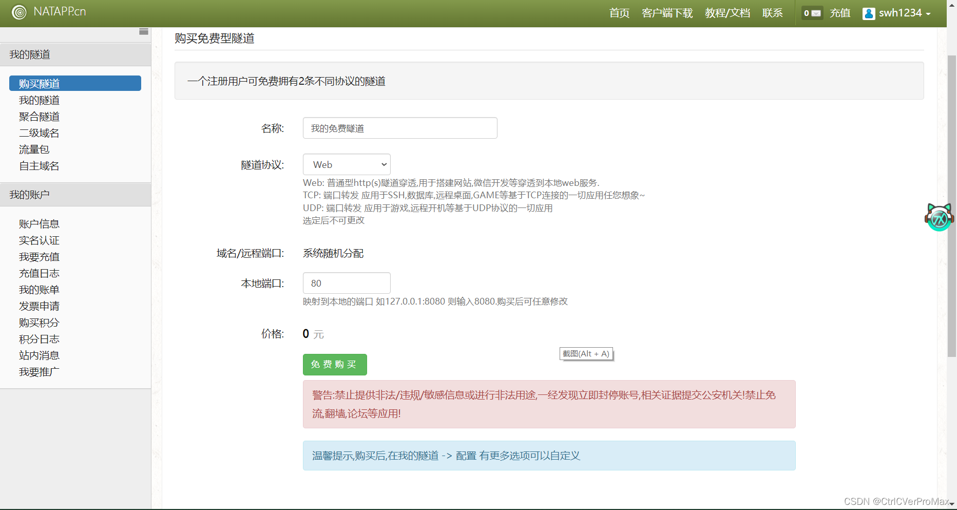 natapp官网进行注册,然后进行实名认证