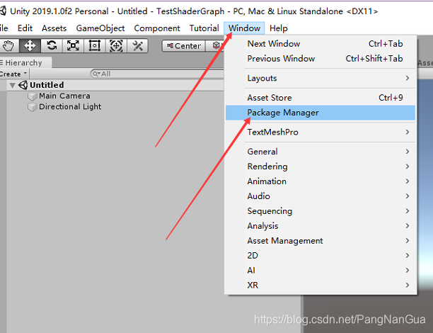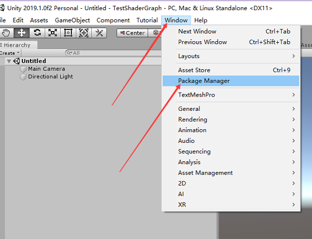 选择All packages以显示所有可安装的包,安装Lightweight RP和Shader Graph两个包,如图示