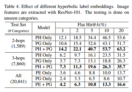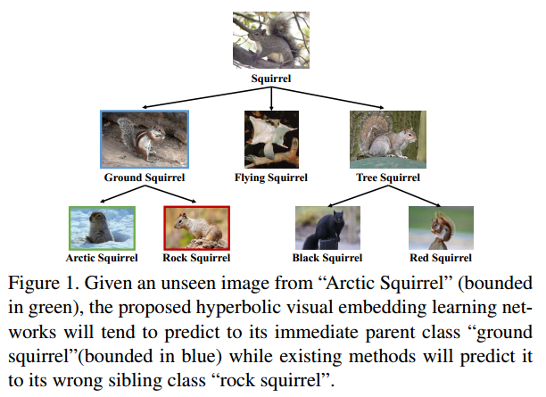 本文提出了双曲视觉嵌入学习网络,用于zero-shot识别。网络在双曲空间内学习图像嵌入,这样能够在低维中能够获得语义类别的分层结构。与其他zero-shot方法相比,该方法更加鲁棒,因为嵌入特征到双曲空间能够更好表示类别层级,进而避免误分类。该模型的表现更好,可以学习1000种类别,对20841张没有见过的图片进行分类。