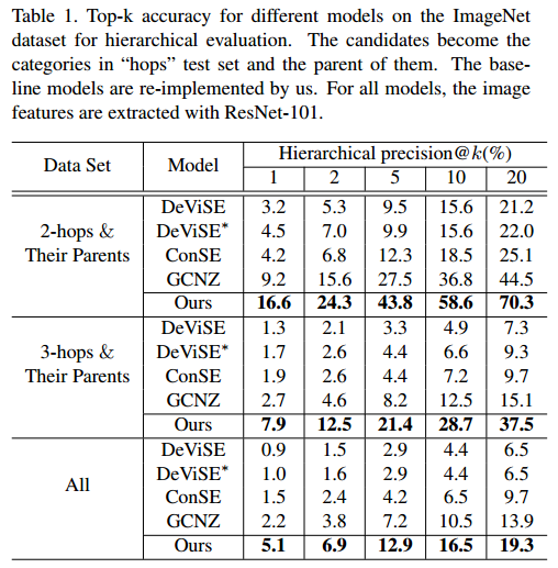 现有的工作都没有对zero-shot的鲁棒性进行研究,都是直接学习从视觉空间到语义空间的映射。语义空间常常用一个语义向量来表示,可以利用GloVe或者Word2Vec模型。而对于类别之间的分层关系,并未在语义空间中编码。对于分层类别的研究,也有少量的工作,但是这些很难处理类别数量增加的情况。