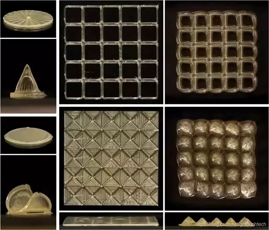 之前也出现过很多可以变形的液晶弹性体制动器,但是该项目显示了在高操作温度的条件下具有空间编程顺序,并直接用墨水书写的3D打印弹性体。