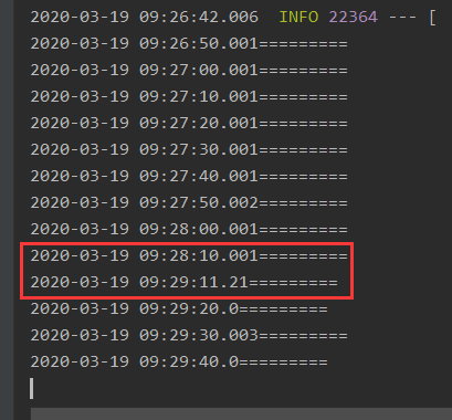 public class Test {@Scheduled(cron = "*/10 * * * * ?")public void test() {Timestamp timestamp = new Timestamp(System.currentTimeMillis());System.out.println(timestamp + "=========");}