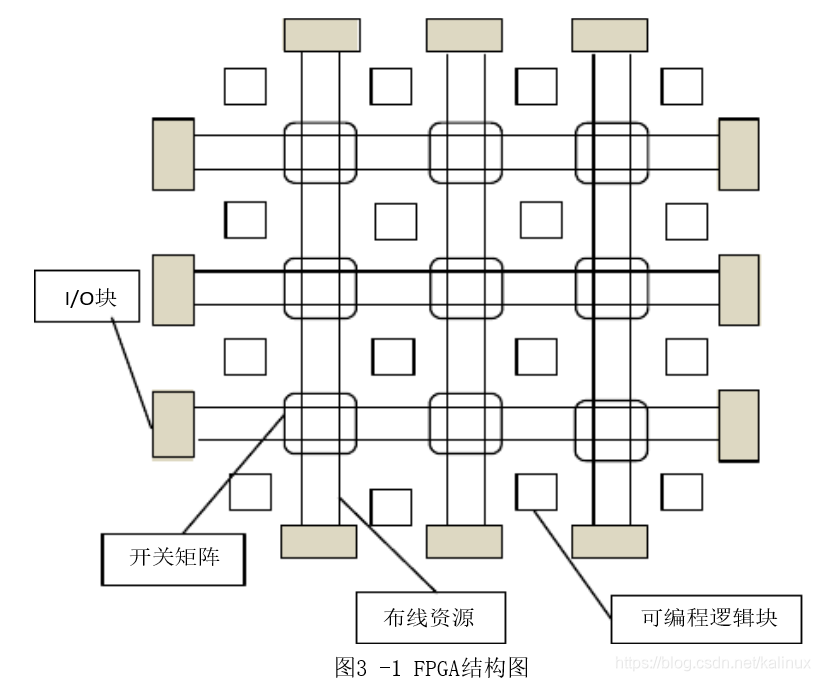 内部包含CLB可编程逻辑模块,输出输入模块IOB,以及内部连线;