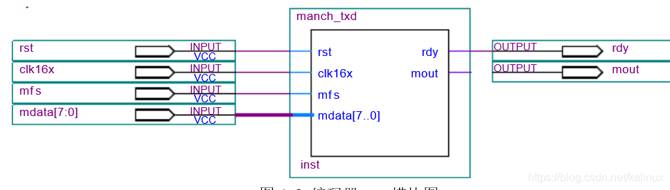 曼彻斯特编码模块,当检测到mfs上升沿时,将mdata数据送到mbuf缓存。一次发送11位,其中编码头3位,时111,8位数据位,1位校验位;