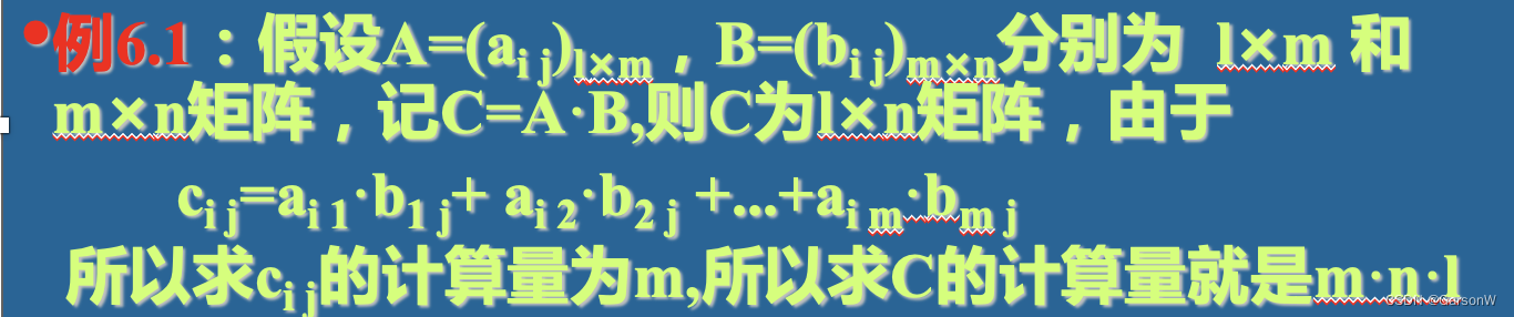 矩阵C总共有 l 乘 n 个元素,每一元素的计算量为m(m次乘法),所以总计算量为m·n·l