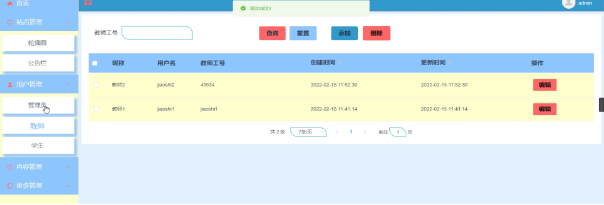 教师管理页面效果如下图所示。