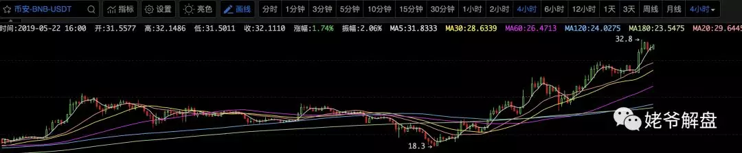 昨晚BNB新高打出了情绪,应数轮动逻辑,平台币利好之下,OKB一扫阴霾,今日也走出10%的涨幅。HT因为IEO目前也表现强势。交易所在熊市之中担当责任,造势造事配合大周期上主力的思维,造出来这轮行情的核心变量IEO,确实配得上平台币新高的预期。在整个行情的发展中,更多的资金交易,平台币得到了价格上的真正支撑,所以我个人觉得现货平台币确实是今年最大的看点,只要市场情绪在,那么行情很难说完。