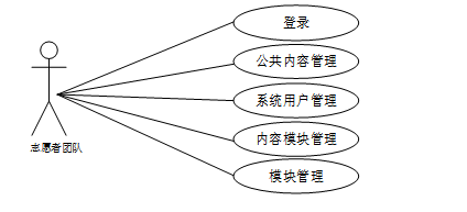 (2)系统用户管理功能需求:系统用户管理部分包括了管理员,注册用户和志愿者团队三部分,管理员可以对这三部分进行添加,修改,删除以及查询等。