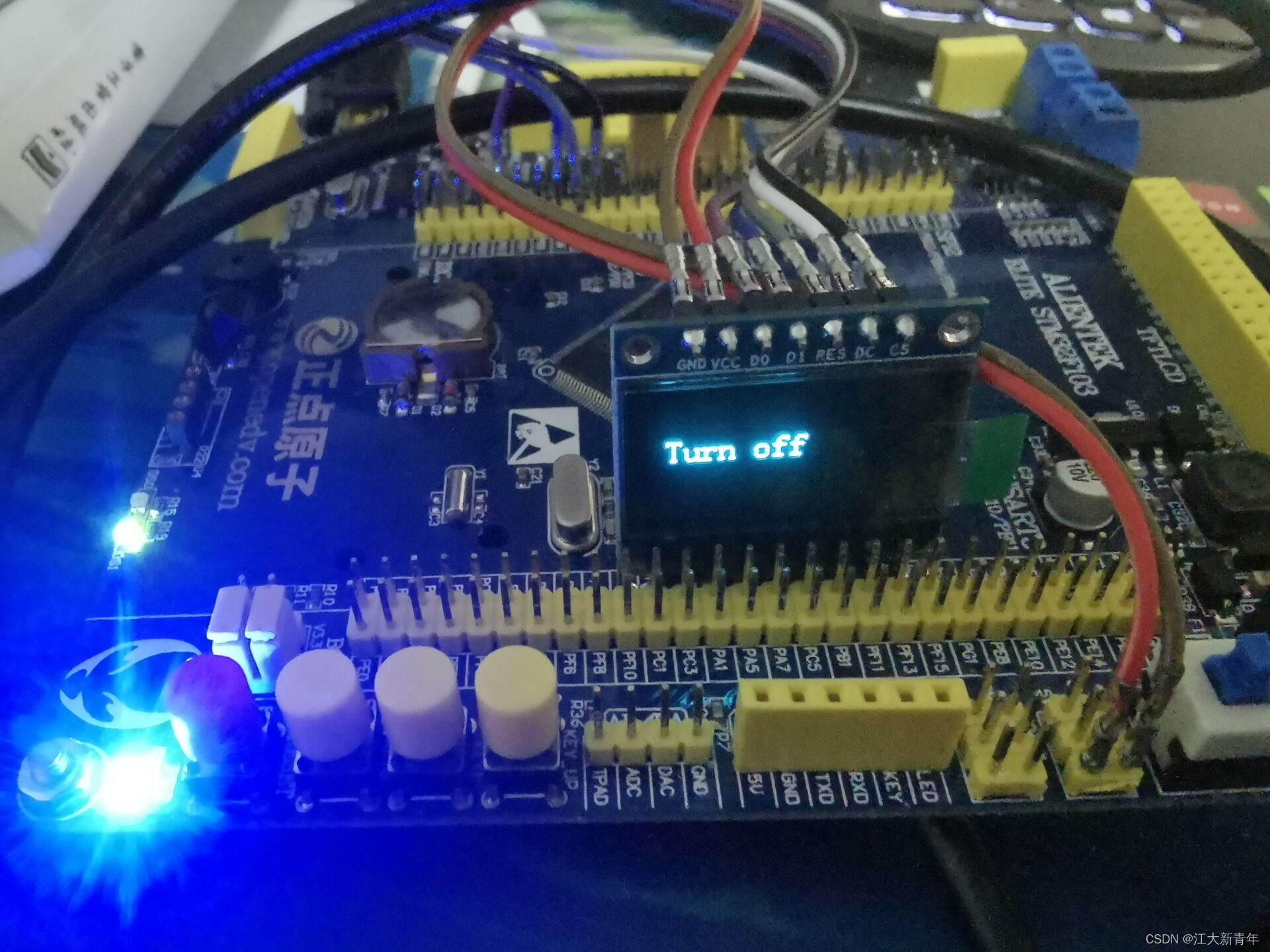 实现流水灯的暂停、启动功能,并且会在oled上显示Turn on/Turn off信息。
