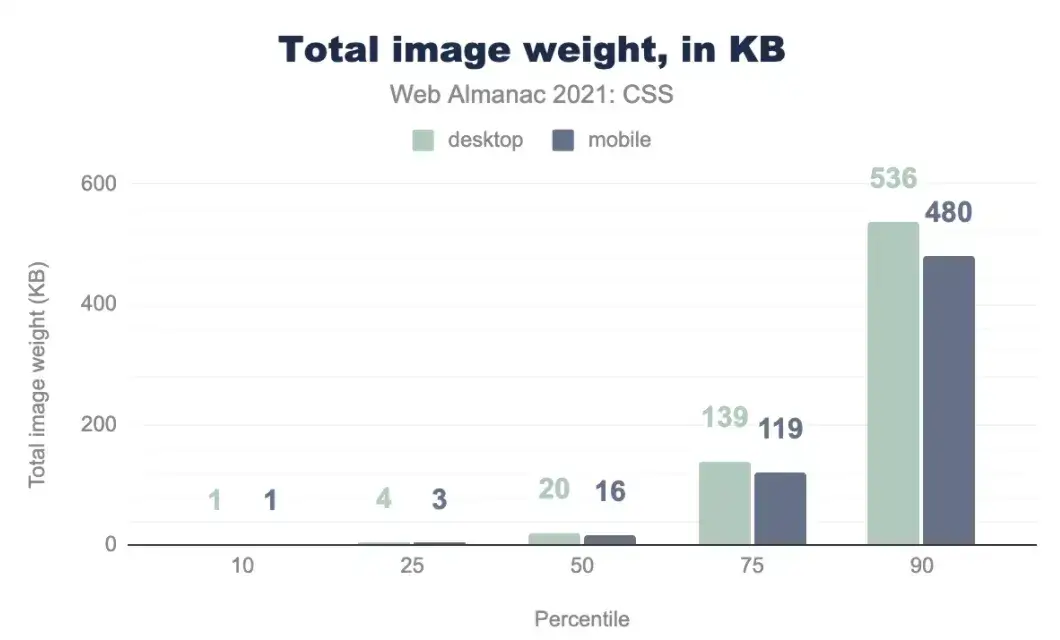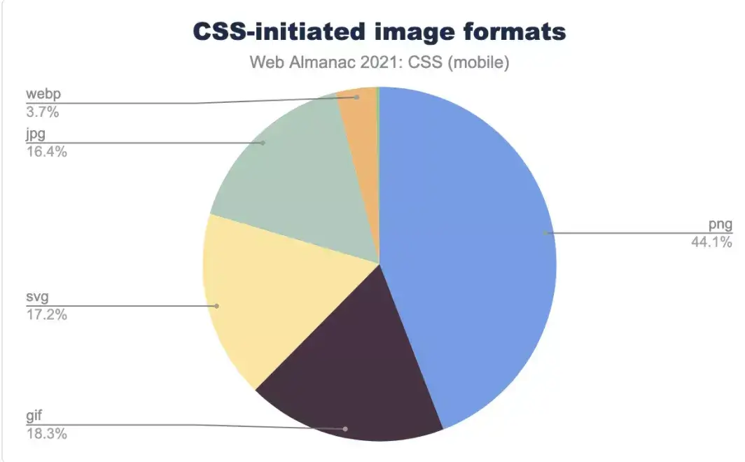 下面是按照图片格式在移动页面上通过CSS加载的外部图像大小分布: