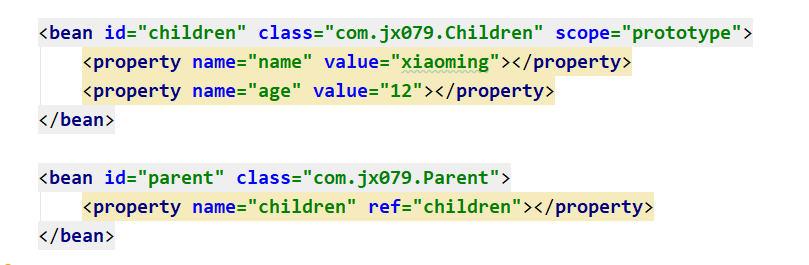 我们已经了解了Children这个Bean,假设我们现在有一个Parent类型的Bean,它依赖于Children类型的Bean,现在我们需要每次获取parent对象时,parent对象都是同一个对象,但他依赖的children对象必须每次都不一样。