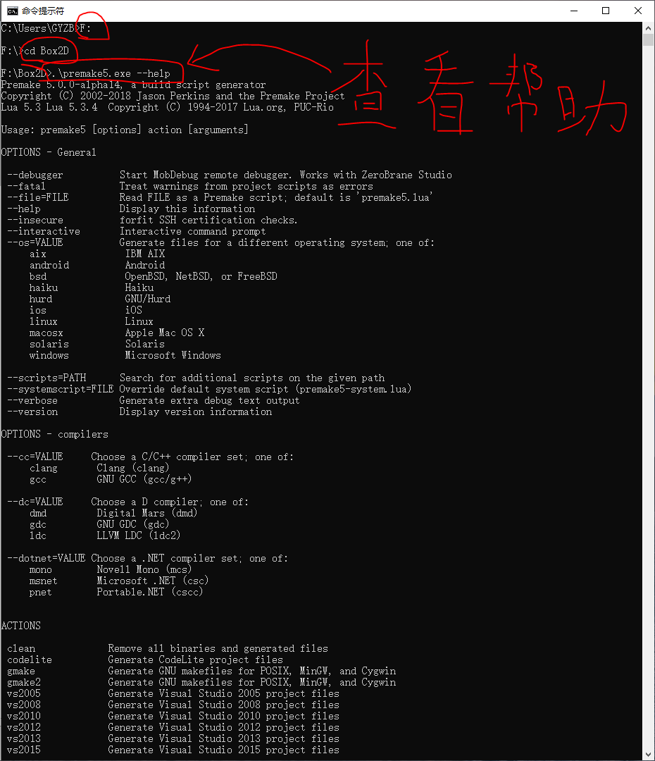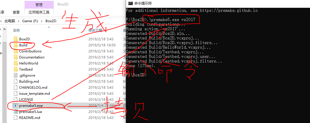 ③将下载好的premake.exe放入解压好的Box2D文件夹内(只是为了方便编译,查看帮助可以了解)