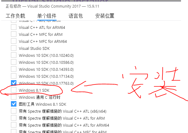 错误 MSB8036 找不到 Windows SDK 版本8.1。