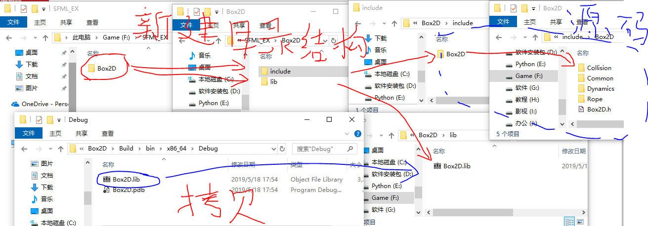⑥把生成的Box2D.lib和Box2D文件夹分别放入新建的lib和include文件夹
