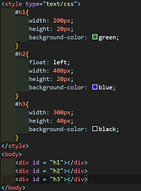 如果使用了浮动的元素的上一个元素是标准流中的元素,如上面例子中的div2使用了浮动,div1是标准流,此使div2的顶部是与div1的底部对齐的而不会与div1在同一行显示。如果div1也使用了浮动,那么在空间允许的情况下div2会 和div1在同一行显示。