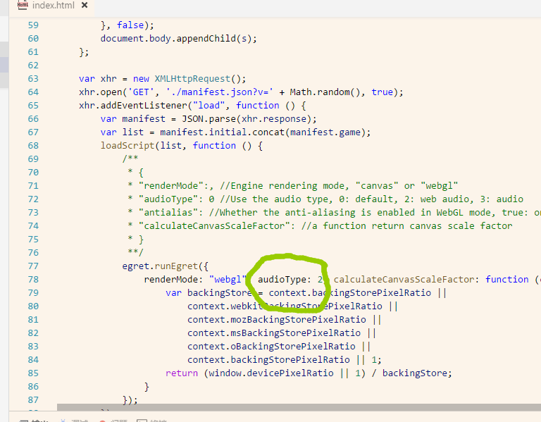 audioType默认为0,是为不调过浏览器自动播放禁令设置,我们修改为2则调用白鹭官方为我们设置的解决方案,解决问题。
