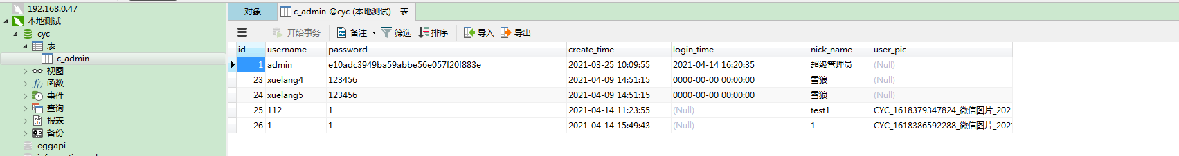 1、把cyc.sql还原进去你的本地数据库里(还原很简单,你下载个Navicat for MySQL 链接你本地数据库,然后本地数据库见一个库命名cyc,下面在见一个表,右键 运行sql文件 然后指向我那个cyc.sql就行了,对了 你本地数据库记得密码改成123456,不改也可以,你可以在egg的config.default.js里改配置也可以)