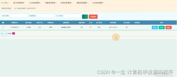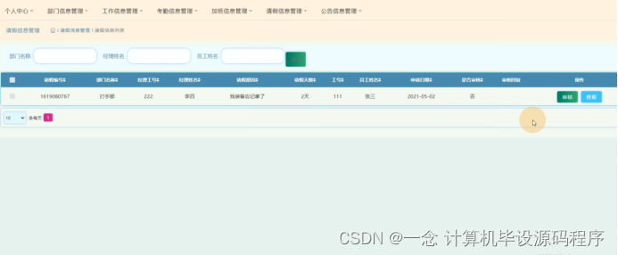 图5-14请假信息管理界面图