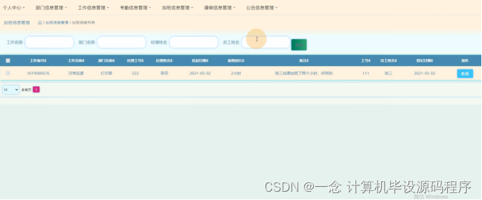 图5-13加班信息管理界面图