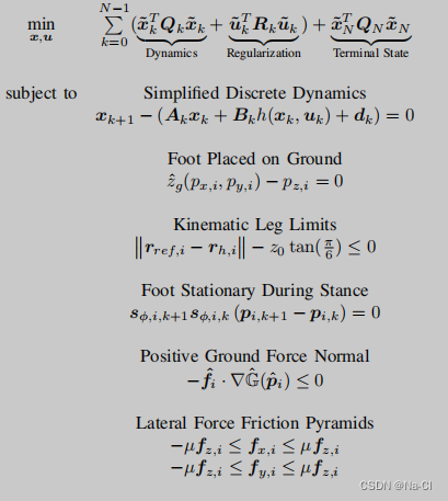 参考论文为[Online Trajectory Optimization for Dynamic Aerial Motions of a Quadruped Robot],[Implementing Regularized Predictive Control for Simultaneous Real-Time Footstep and Ground Reaction Force Optimization]