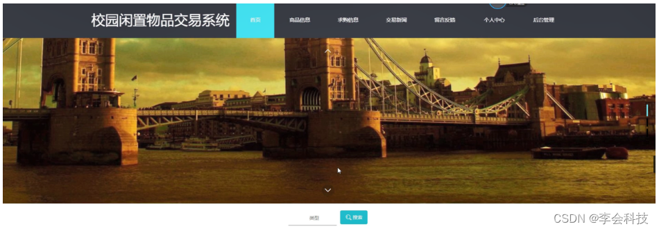 校园闲置物品交易系统,在系统首页可以查看首页、商品信息、求购信息、交易新闻、留言反馈、个人中心、后台管理等内容进行详细操作,如图5-1所示。