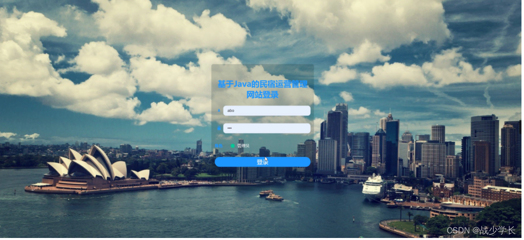 管理员登录,通过填写注册时输入的用户名、密码、选择角色进行登录,如图5-7所示。