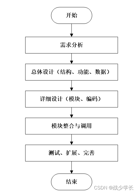 民宿运营管理网站开发时,首先进行需求分析,进而对系统进行总体的设计规划,设计系统功能模块,数据库的选择等,本系统的开发流程如图3-1所示