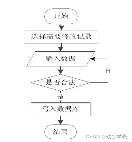 管理员可以对民宿运营信息等进行的修改,用户也可以对自己权限内的信息进行修改,首先进入修改信息界面,输入修改信息数据,系统进行数据的判断验证,修改信息合法则修改成功,信息更新至数据库,信息不合法则修改失败,重新输入。修改信息流程图如图3-5所示。