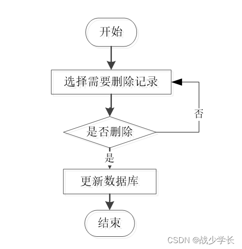 管理员可以对民宿运营信息等进行信息的删除,对要删除的信息进行选中后,点击删除按钮,系统会询问是否确定,若点击确定,则系统会删除掉选中的信息,并在数据库内对信息进行删除,删除信息流程图如图3-6所示。