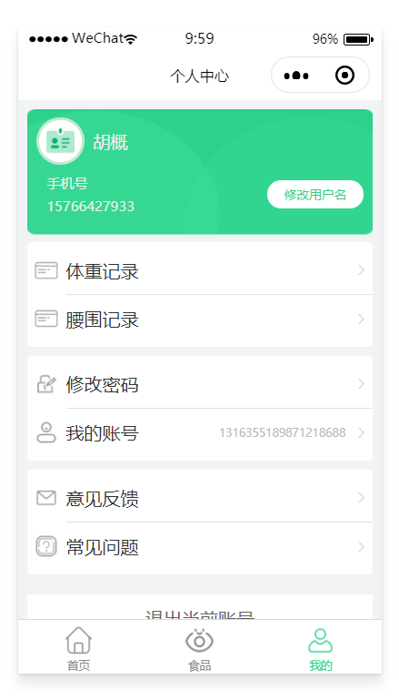 个人中心、退出登录: