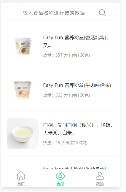 包含食物列表、食物详情、食物搜索