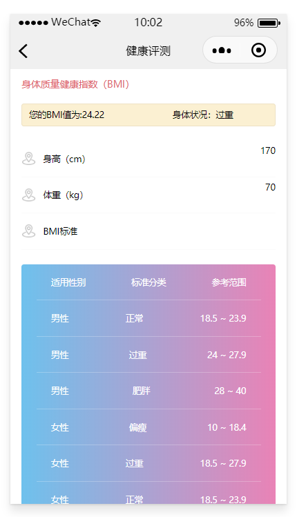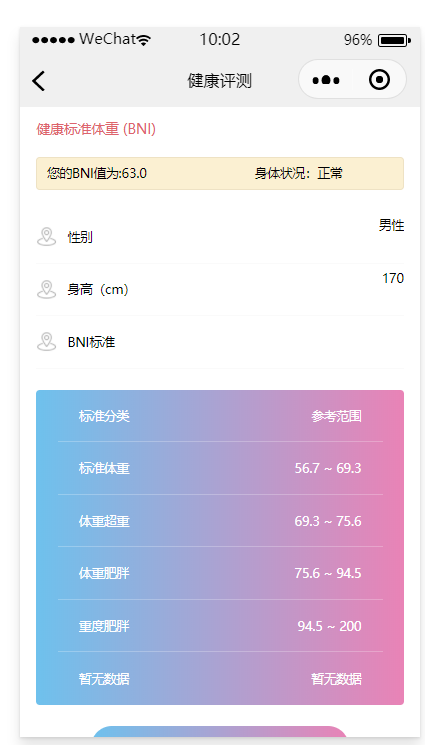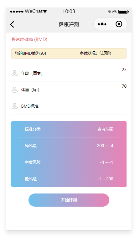 包含BMI计算、BNI计算、BMD计算、BFR计算