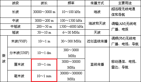 - 5G, 6G:毫米级。