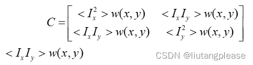 首先采用Sobel算子计算出梯度Ix和Iy,再逐点计算其乘积,最后使用高斯窗对该乘积图像的所有像素点进行卷积即可。