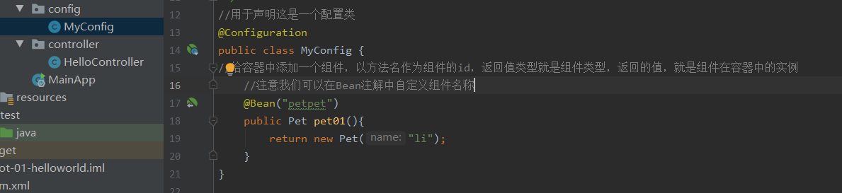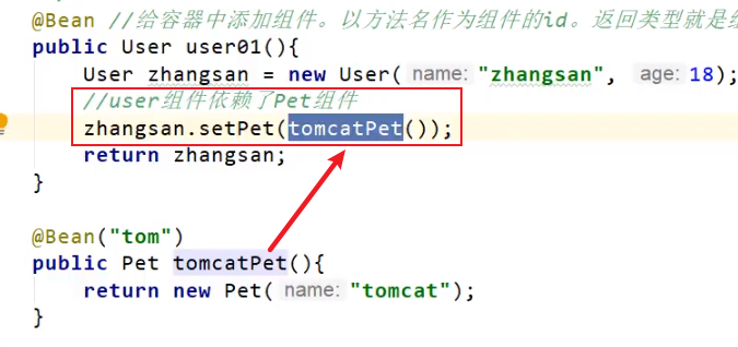 这个方法一定要在配置类中写。在一些使用第三方包的情况下,我们不确定第三方是否使用了第一种方法,是否使用了@Component注解,这个时候我们使用这个方法。
