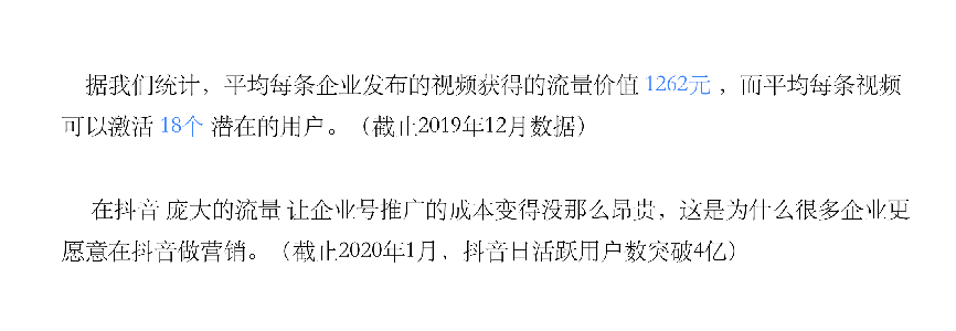 数据显示,截至2020年1月5日,抖音的日活跃用户数突破4亿。同时,抖音2019年1月抖音日活量2.5亿,2019年7月日活量达到3.2亿 所以现在知道目前抖音对一个企业宣传的重要性了吧,但是确实运营好一个抖音号是比较难的,需要很多人力物力,这时候一些品牌公司会找专业的抖音代运营公司全权去代理