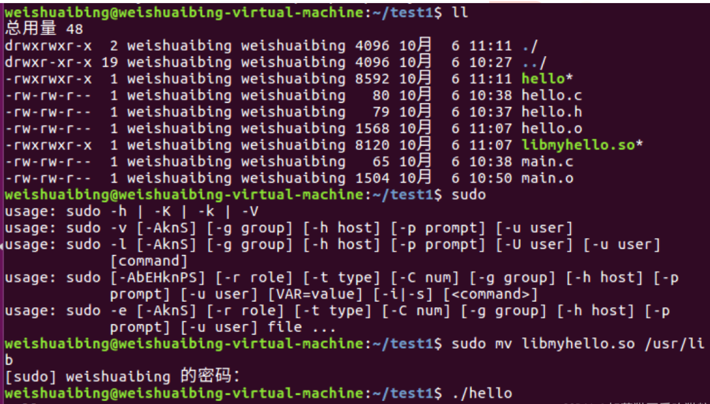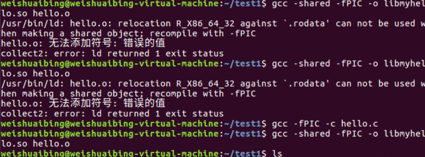 创建动态库 gcc -shared -fPIC -o libmyhello.so hello.o