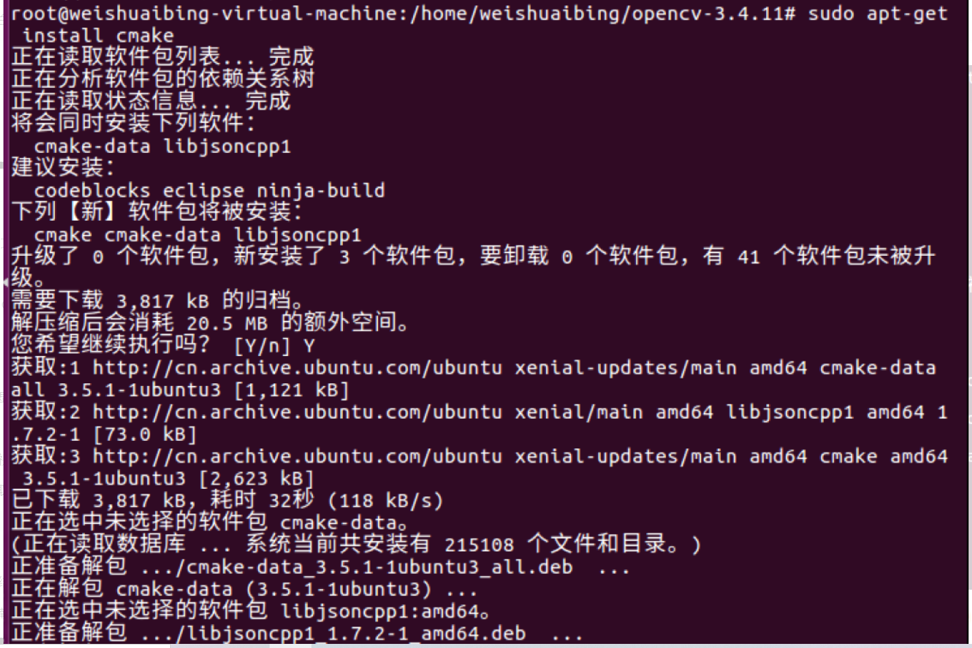 编译过程获得opencv头文件、链接lib库文件的路径的方法:
