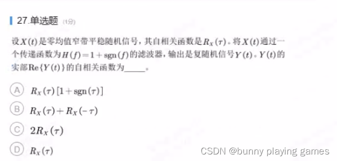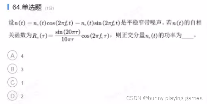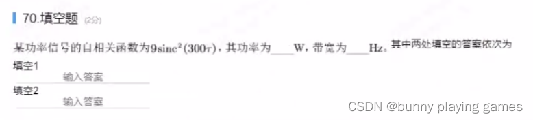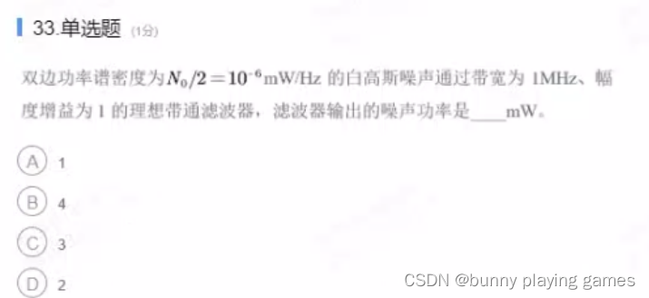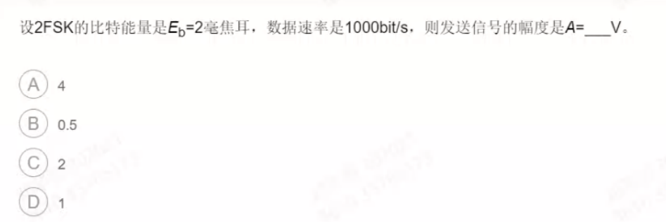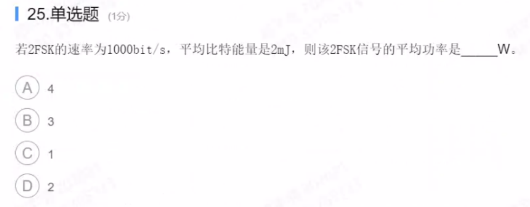 25. 若2FSK的速率为1000bit/s,平均比特能量是2mJ,则该2FSK信号的平均功率是_W