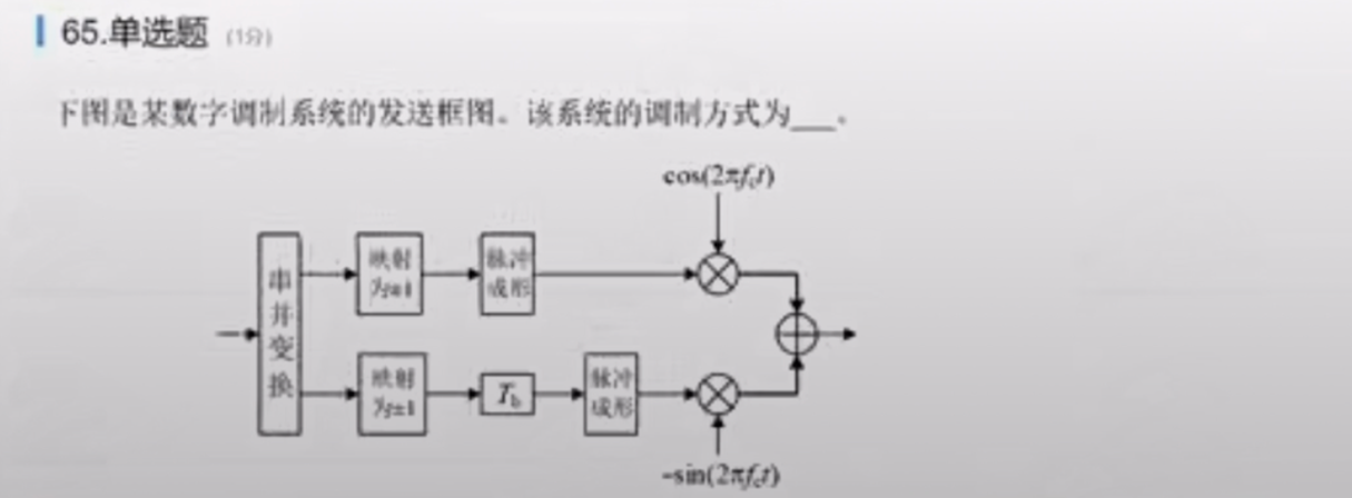 65. 下图是某数字调制系统的发送框图。该系统的调制方式为_