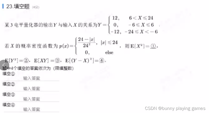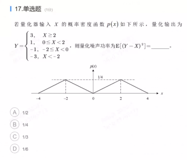 17. 若量化器输入X的概率密度函数 p(x)如下所示,量化输出为……则量化噪声功率为