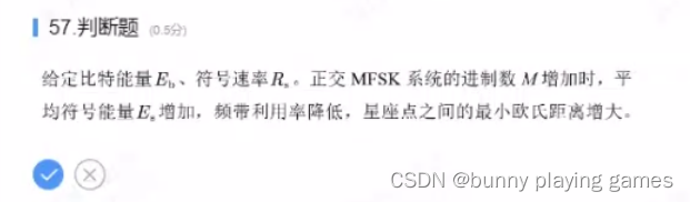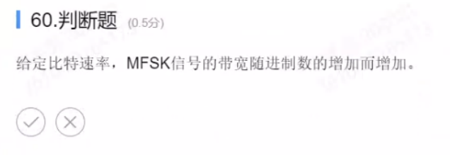 60. 给定比特速率,MFSK信号的带宽随进制数的增加而增加。