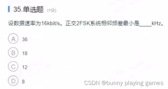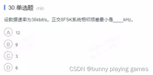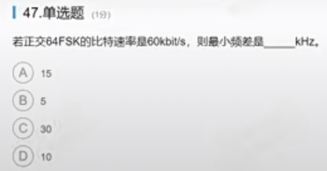 47. 若正交64FSK的比特速率60kbit/s,则最小频差是_kHZ,