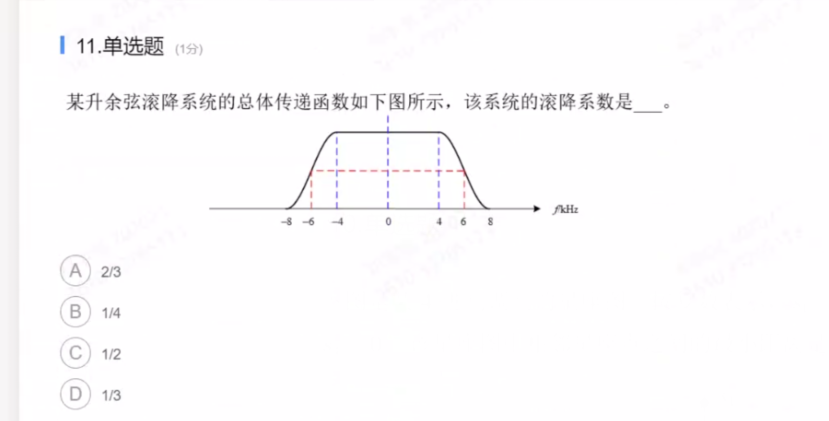 11. 某升余弦滚降系统的总体传递函数如下图所示,该系统的滚降系数是
