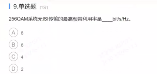9. 256QAM系统无ISI传输的最高频带利用率是bit/s/Hz。