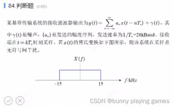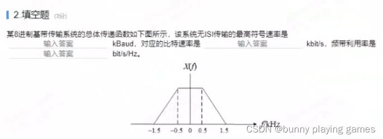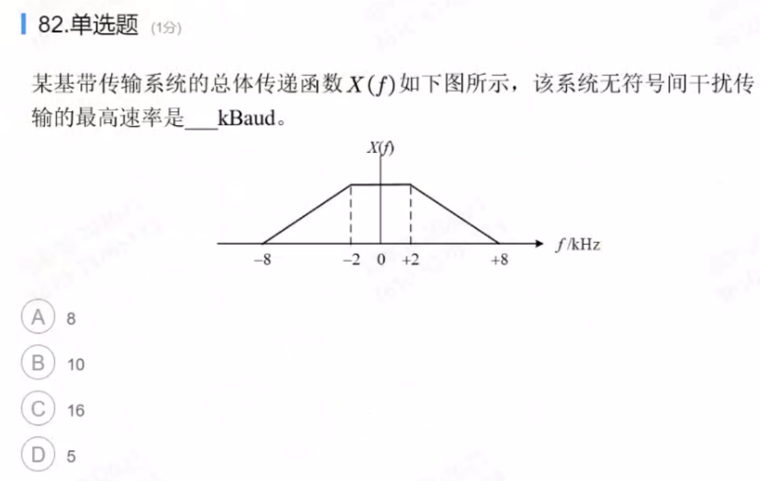 82. 某基带传输系统的总体传递函数X()如下图所示,该系统无符号间干扰传输的最高速率是kBaud。