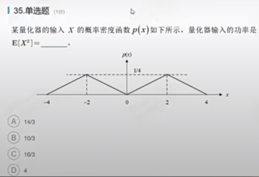 35. 某量化器的输入 X 的概率密度函数 p(x)如下所示,量化器输入的功率是E(x]=