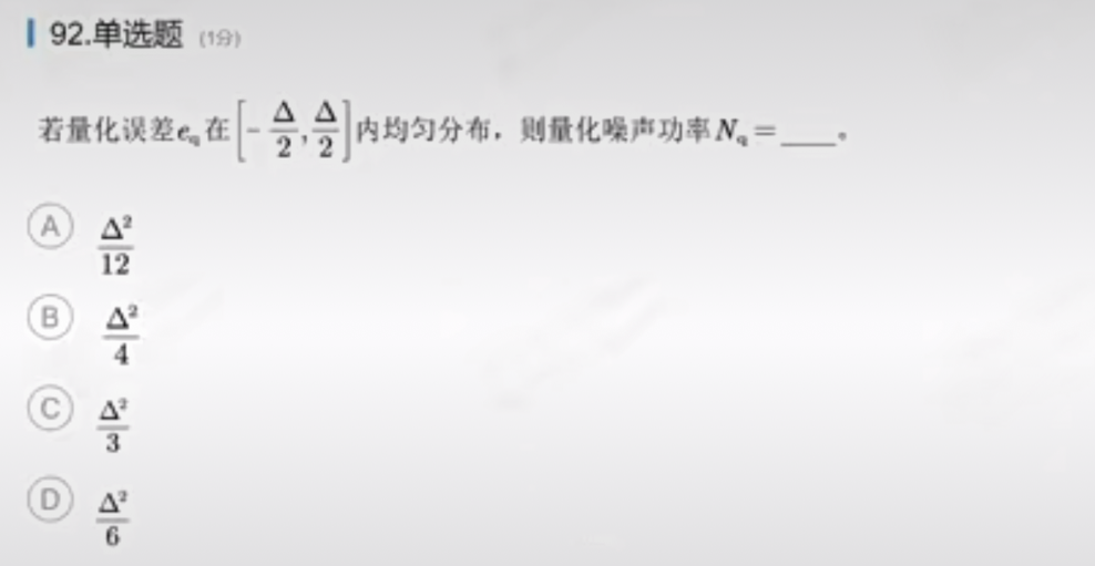 92. 若量化误差e。在 内均匀分布,则量化声功率N。=