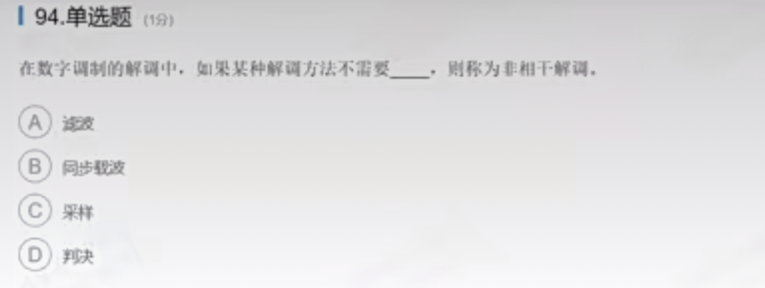 94. 在数字调制的解调中,如果某种解调方法不需要,则称为非相干解调,